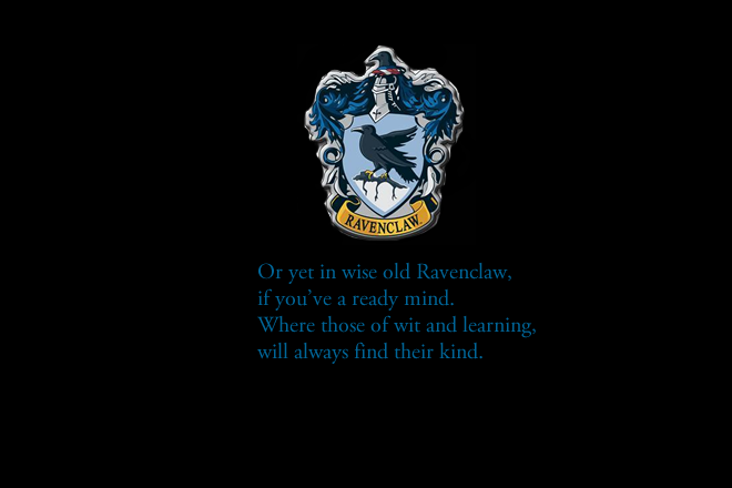 Or yet in wise old ravenclaw, if you've a ready mind, where those of wit and learning, will always find their kind.