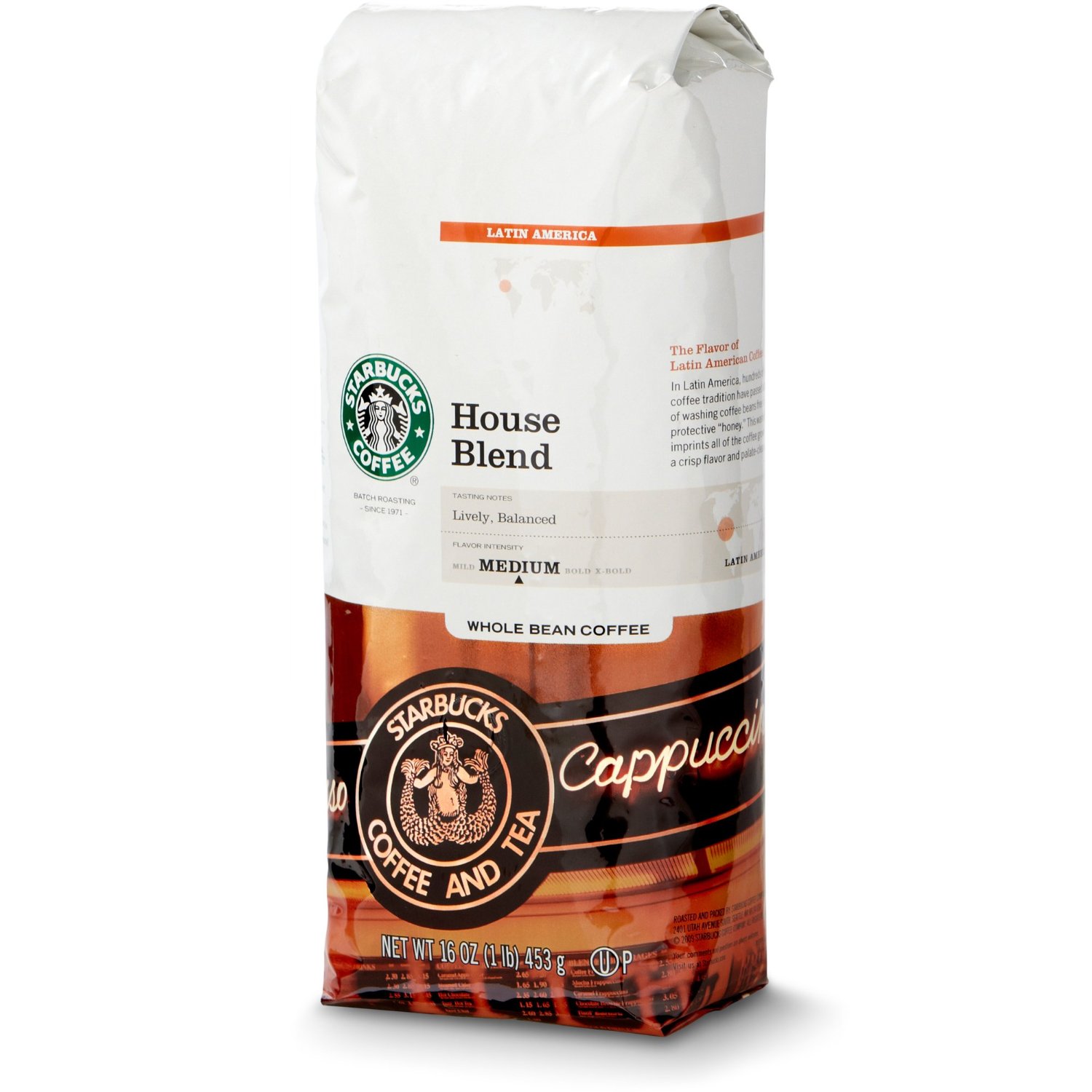 Starbucks House Blend Buy now at all major online retailers. Aroma, body and flavor all in balance—with tastes of nuts and cocoa brought out by the roast. For finest taste, use cold, filtered. Starbucks house blend medium roast whole bean coffee 40 oz/2.5 lb /1.13kg. Loaded with flavor, balancing tastes of nut and cocoa, just a touch of sweetness from the roast. I do not make it as strong as they recommend but i am sure everyone makes it their own way.